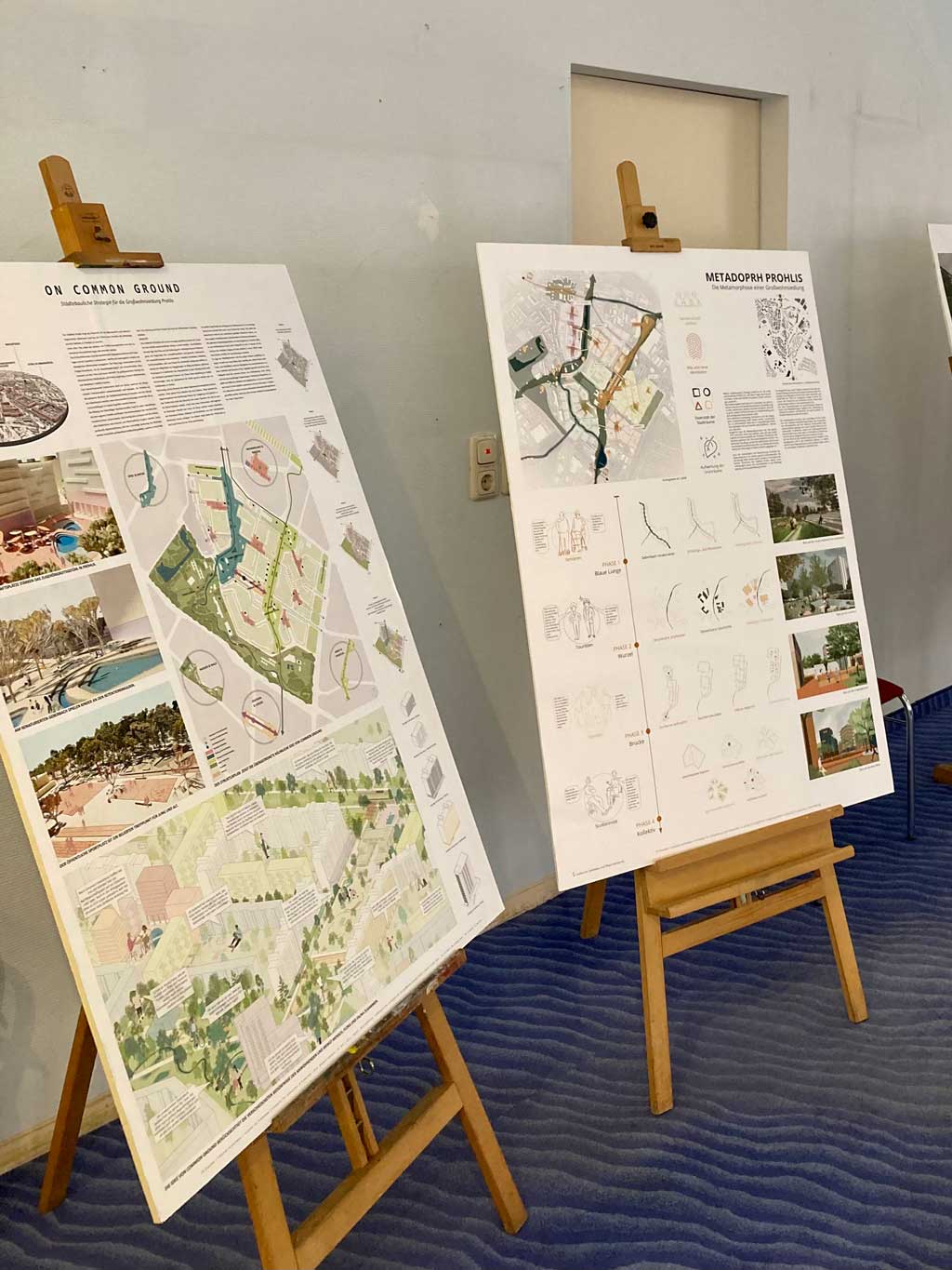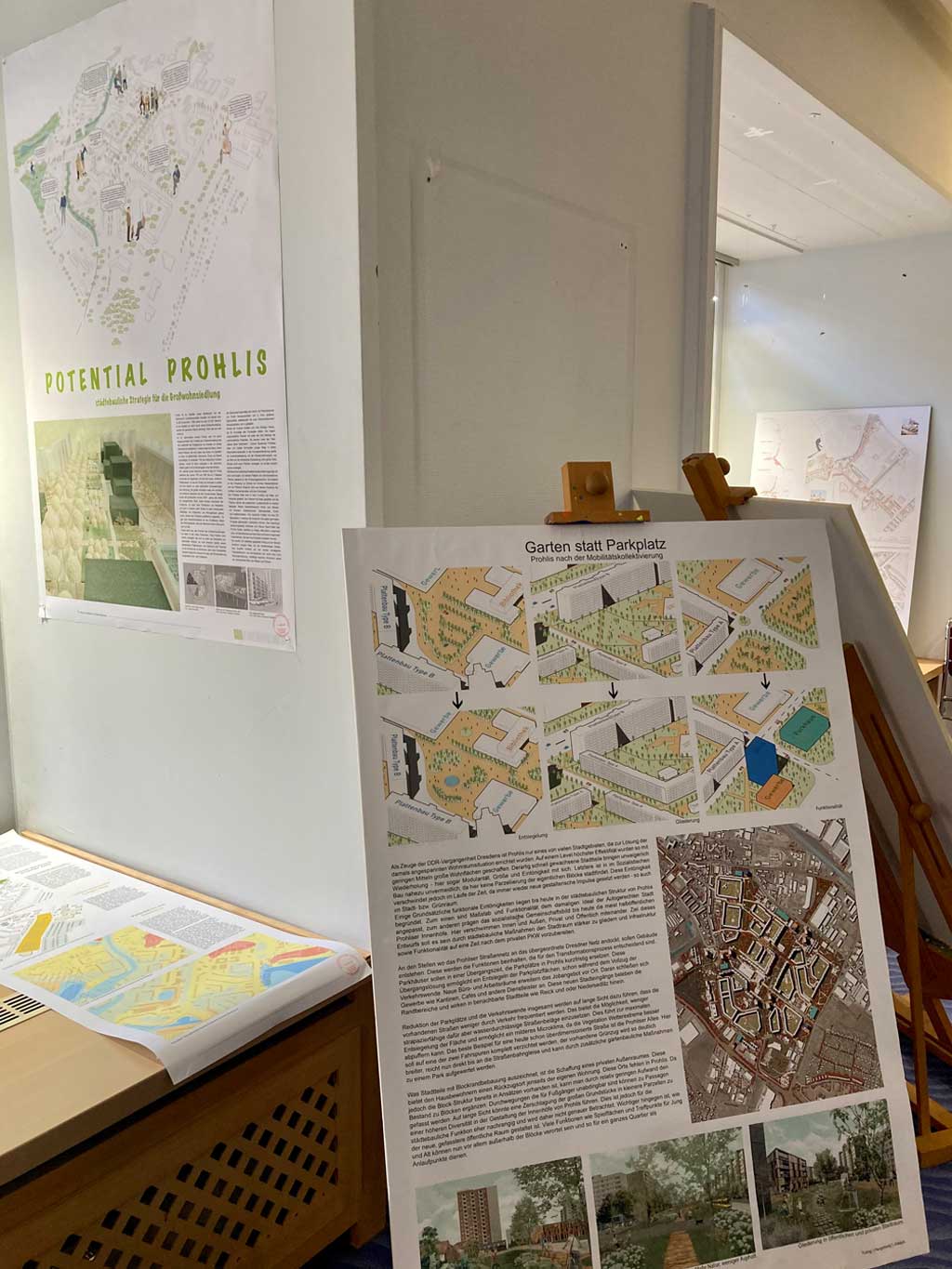 Teil der Ausstellung waren Ergebnisse von studentischen Arbeiten zu Visionen, wie Prohlis in ferner Zukunft gestaltet werden könnte. Es sind Entwürfe zur städtebaulichen und landschaftsarchitektonischen Entwicklung von Prohlis, die im Sommersemester 2022 durch Studierende der Fakultät für Städtebau und Landschaftsarchitektur der TU Dresden entstanden sind.