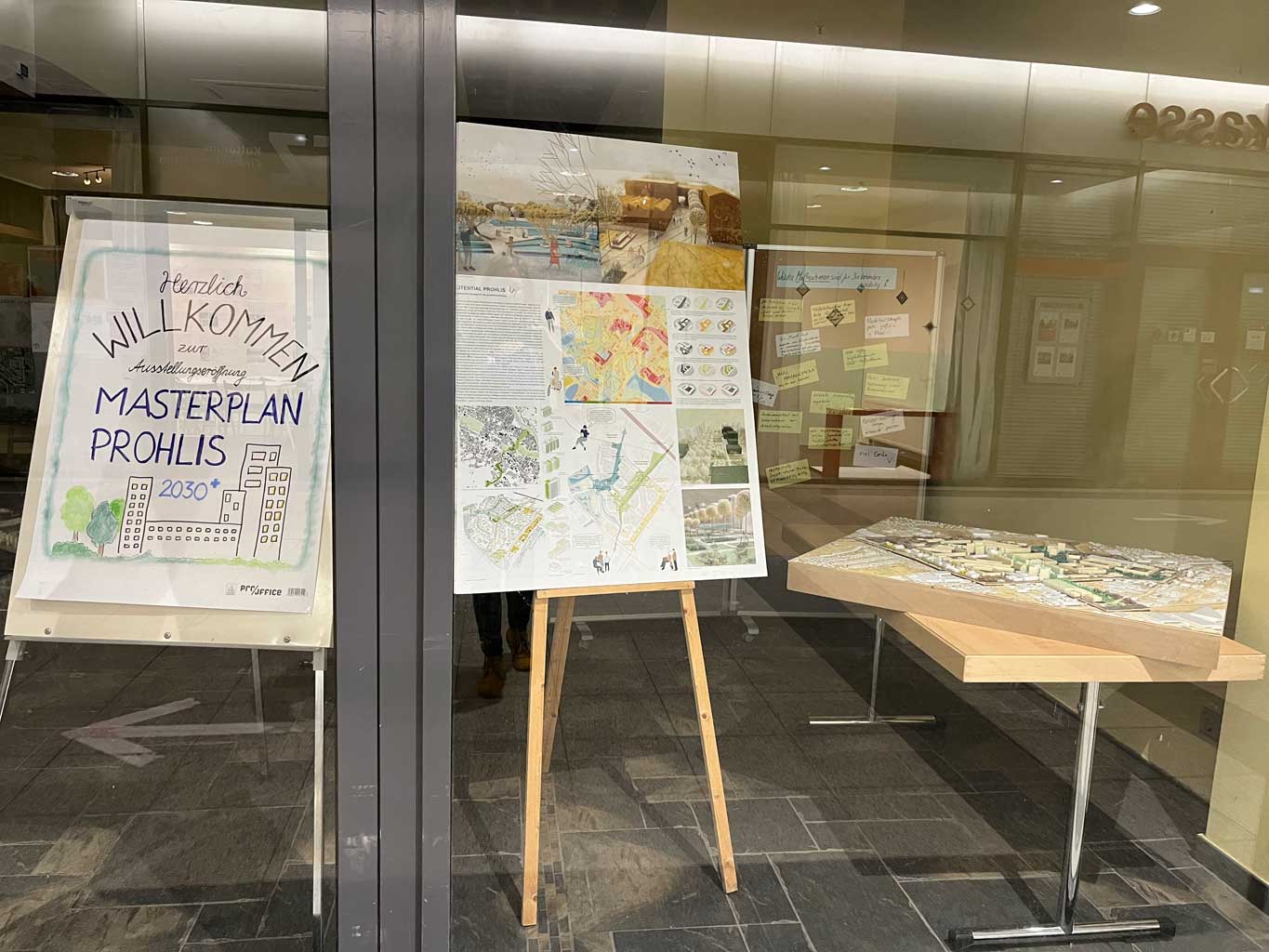 Im März wurden die bisherigen Ergebnisse zum Masterplan Prohlis 2030+ im Rahmen einer Ausstellung der Prohliser Bewohnerschaft und interessierten Öffentlichkeit vorgestellt. Die Ausstellungsbesucherinnen und -besucher konnten sich über die Ergebnisse informieren, und ihre Meinung dazu geben.