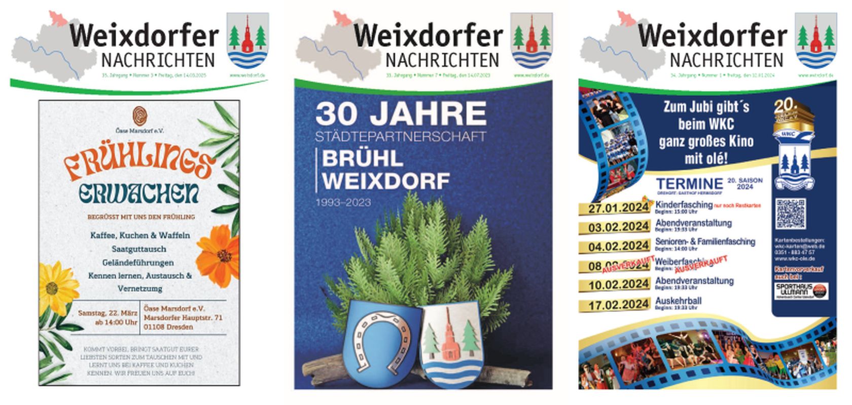 Hier finden Sie alle Ausgaben der Weixdorfer Nachrichten 2018 bis 2024.