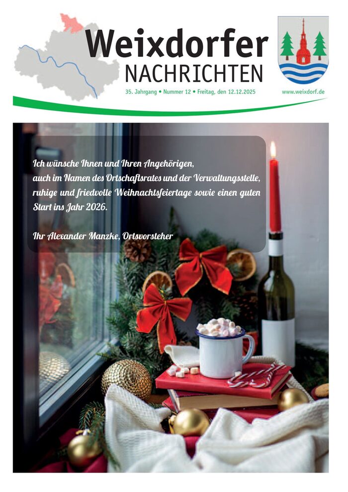 Einmal im Monat erscheinen die Weixdorfer Nachrichten, mit Informationen aus der Verwaltung, Nachrichten aus den Ortschaften Weixdorf mit Marsdorf, Terminen, Veranstaltungen und vielem mehr.