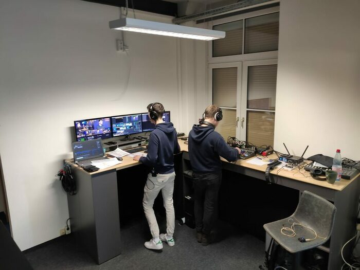 Vor Ort bei Sachsen Fernsehen ging es für die beiden erst einmal ganz professionell in die Maske. Außerdem wurden sie mit technischem Equipment ausgestattet und in den Ablauf des Livestreams eingewiesen. Dann rief der Kameramann „Nur noch 1 Minute“ und es ging los.
