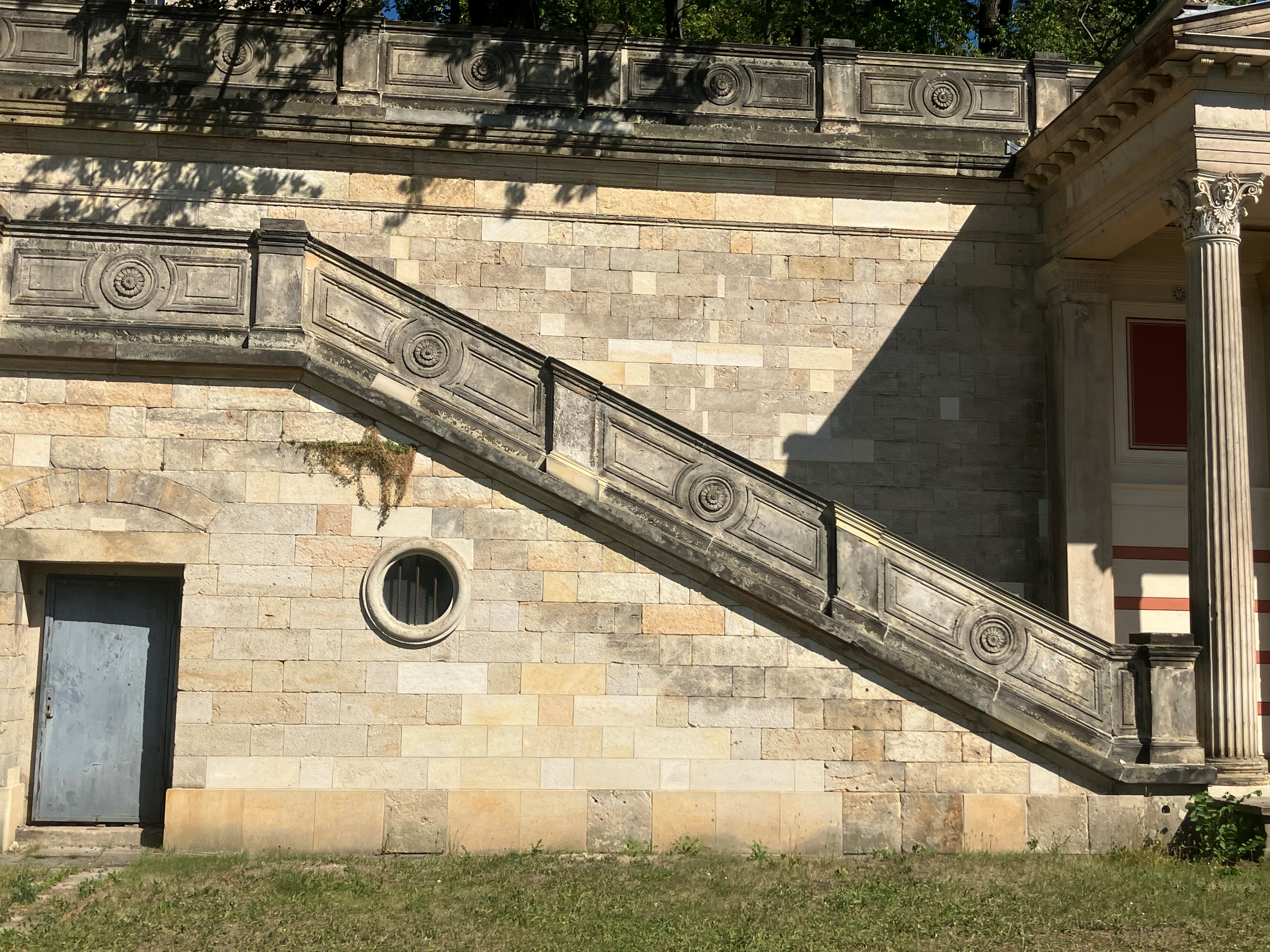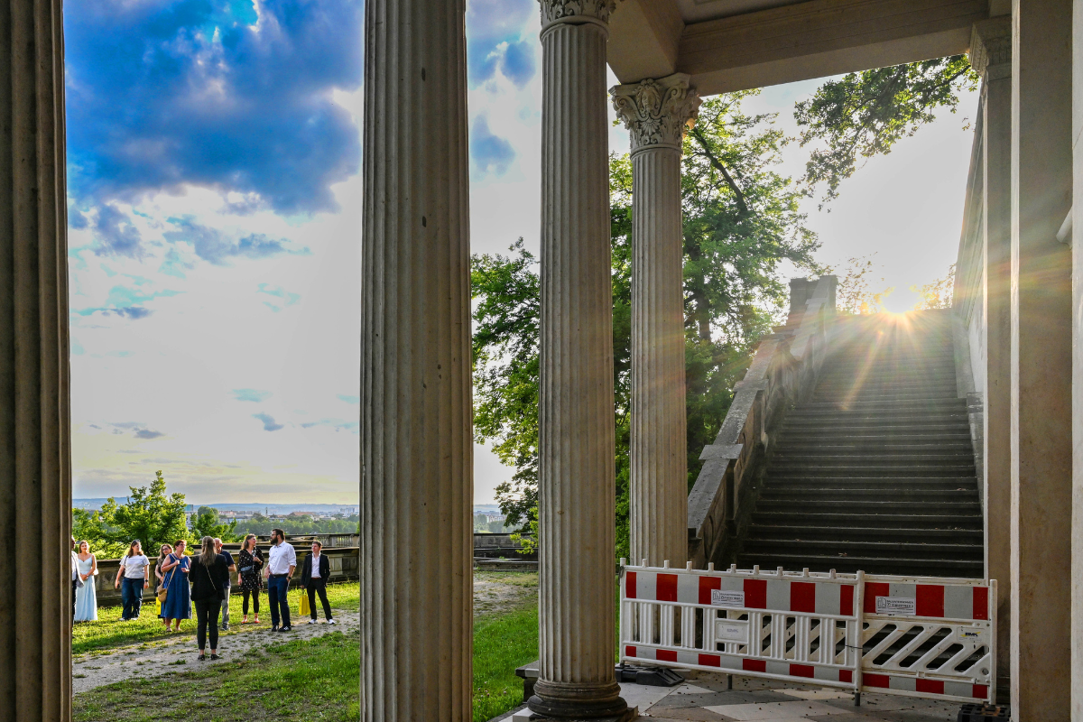 Juli 2025: Projektleiterin Mary Knopf stellt das Römische Bad im Video vor. Sie erzählt zur Entstehungsgeschichte des Ortes, erläutert die Architektur, zeigt den aktuellen Sanierungsbedarf auf und gibt einen Ausblick in die Zukunft des romantischsten Ortes Dresdens.
