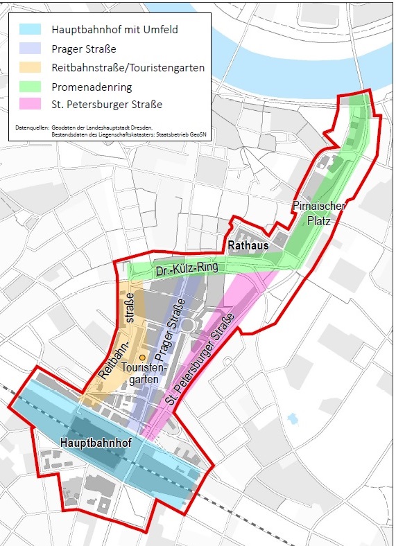 Im Oktober 2024 ist das südliche Stadtzentrum in das Bund-Länder-Programm „Wachstum und nachhaltige Erneuerung“ als Fördergebiet neu aufgenommen worden. Das Fördergebiet Innenstadt erstreckt sich zwischen der geplanten Carolabrücke im Norden und dem Hauptbahnhof im Süden. Bis Ende 2038 stehen für die städtebauliche Erneuerung und Klimaverbesserung 17,55 Millionen Euro zur Verfügung. Davon kommen vom Bund und Freistaat Sachsen 11,7 Millionen Euro und von der Landeshauptstadt 5,85 Millionen Euro. In dem 53 Hektar großen Fördergebiet sollen voraussichtlich zwölf Projekte umgesetzt werden.