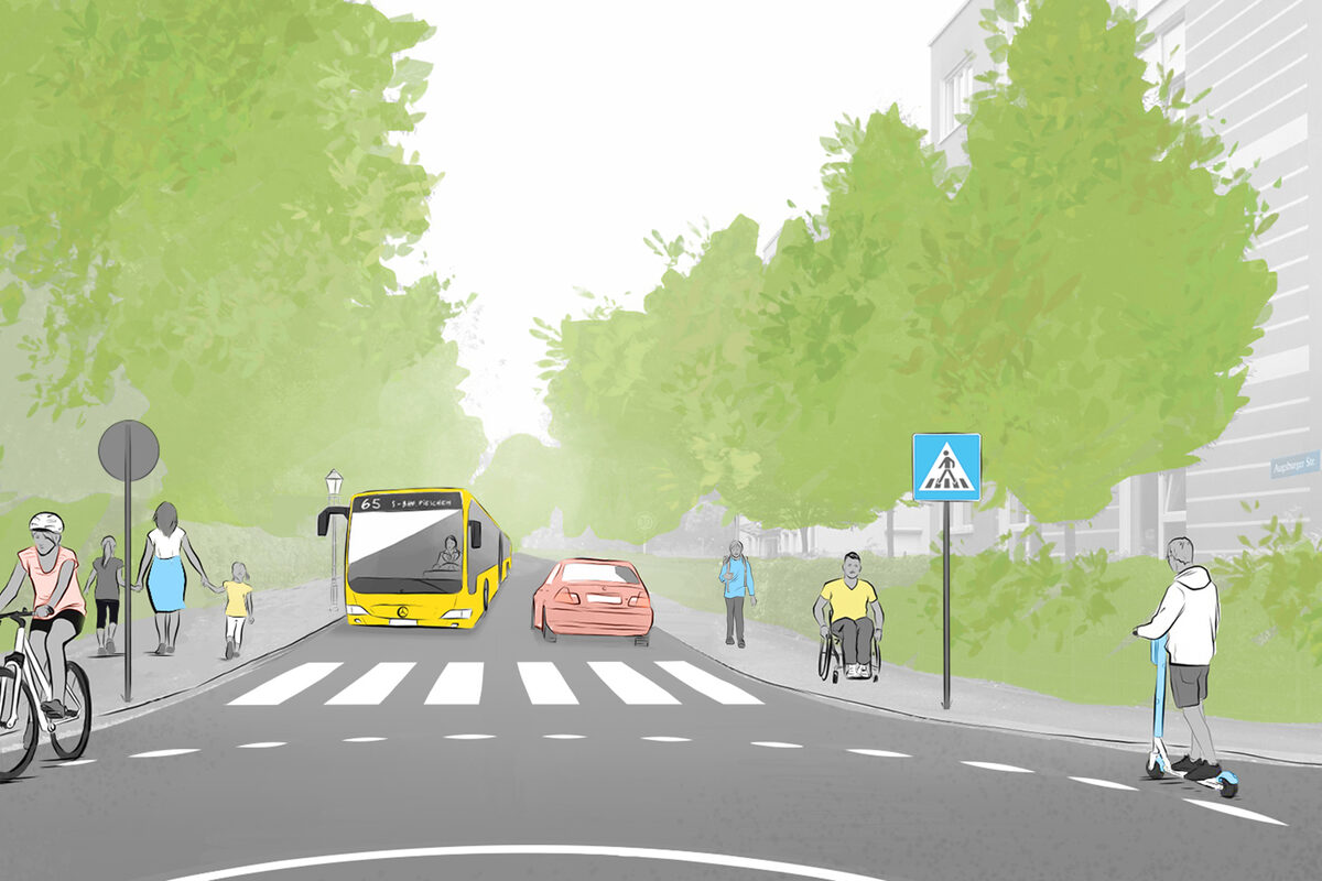 Als Nebeneffekt der Sanierung wird die Augsburger Straße auf der gesamten Strecke bustauglich. Für die Anwohnenden könnte so der Zugang zum öffentlichen Personennahverkehr erleichtert werden. In Striesen leben viele Menschen, darunter auch Kinder sowie Seniorinnen und Senioren, die auf den öffentlichen Personennahverkehr angewiesen sind.