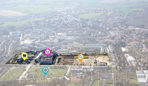 Das Gebiet um das Otto-Dix-Center in Strehlen soll aufgewertet werden und sich zu einem lebendigen Stadtquartier entwickeln.