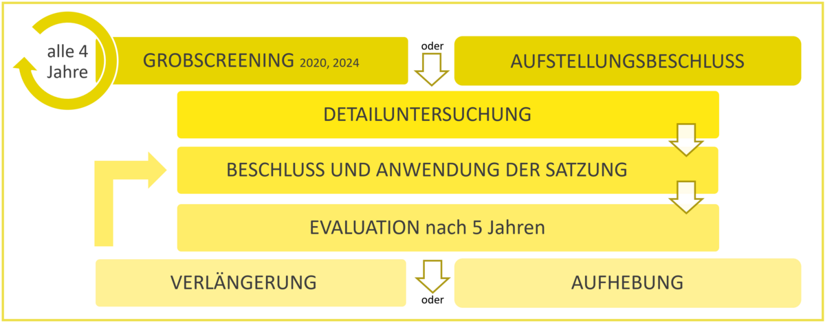 Der Stadtrat könnte per Aufstellungsbeschluss jederzeit weitergehende Untersuchungen für frei gewählte Gebiete beauftragen und dafür Baugesuche um zwölf Monate zurückstellen. Ein Satzungsbeschluss ist nicht zwingend die Folge.