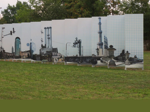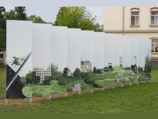 Die bedruckten Wände des "Fahrtwindkinos" spielen mit der Außenwirkung des Grundstücks auf den vorbeifahrenden Straßenbahn-, Kfz- und Fahrradverkehr- sowie vorbeigehende Fußgänger. Aufgrund von Überlappungen entstehen attraktive Bildabfolgen, welche immer wieder neue Perspektiven und abwechslungsreiche lebendige Eindrücke für den Betrachter zulassen. Auf einer Tafelwand werden Bilder als Collage arrangiert, auf welcher Gebäude und Stadträume aus dem näheren Umfeld zu sehen sind. Die zweite Tafelwand beschäftigt sich mit dem Thema Weißeritzgrünzug.