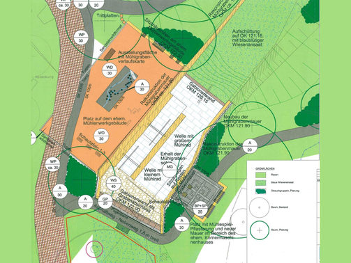 - Ergänzung der Baum- und Strauchbosketts sowie einer Baumallee nach einem denkmalgerechten Grüngestaltungskonzept; Umfeldgestaltung des Kulturdenkmals