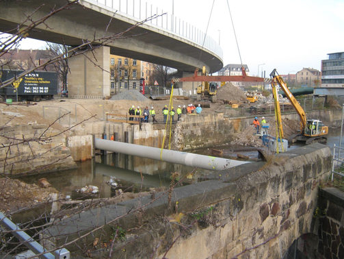 Die Maßnahme ist unabhängig von den Hochwasservorsorgemaßnahmen am Weißeritzknick zu sehen, die in Verantwortung der Landestalsperrenverwaltung ab 2014 durchgeführt werden sollen. Die Dükerung war zwingend vor der hochwasservorsorgebedingten Veränderung des Flussquerschnitts abzuschließen.