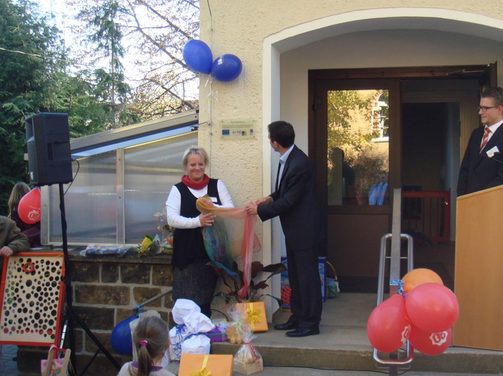 - Integration einer Murmelbahn sowie Einbau einer Lupe in die Sandsteinmauer vor dem Kinderzentrum Friedrichstraße 32-36
