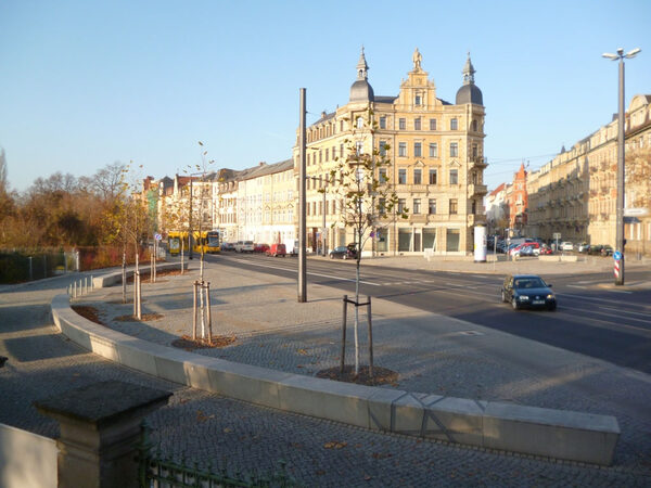Zentral im Gebiet „Nördliche Vorstadt Dresden" befindet sich der Großenhainer Platz mit der St.-Petri-Kirche. Die Kirche dominiert den Platz und ist ein wesentlicher Blickfang im Stadtbild. Der Großenhainer Platz war in seiner Gesamtheit als solcher durch die zahlreichen ungegliederten Flächen und undefinierten Pkw-Standplätze nicht wahrnehmbar und somit stadtgestalterisch unzureichend definiert. Es fehlten entsprechende Raumkanten, Pflanzungen und gestaltete Freiflächen mit Aufenthaltsqualität.