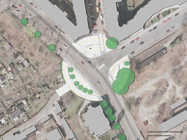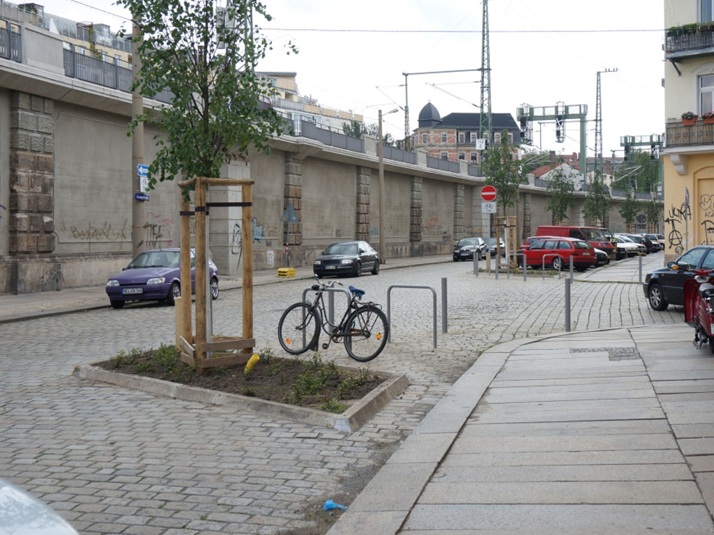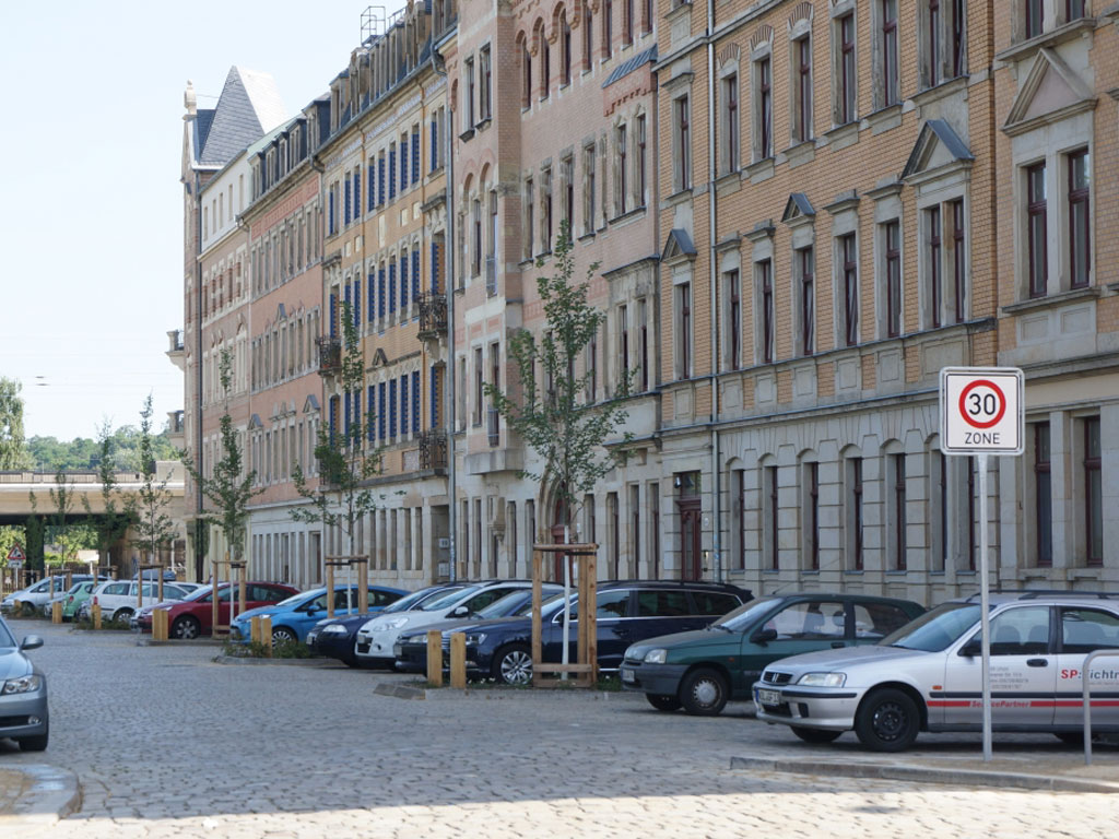 - Ergänzung/ Neuschaffung von Straßenraumbegrünung sowie Parkplatzneuorganisation in Teilbereichen des südlichen Hechtes (Gutschmidstraße, Friedensstraße)