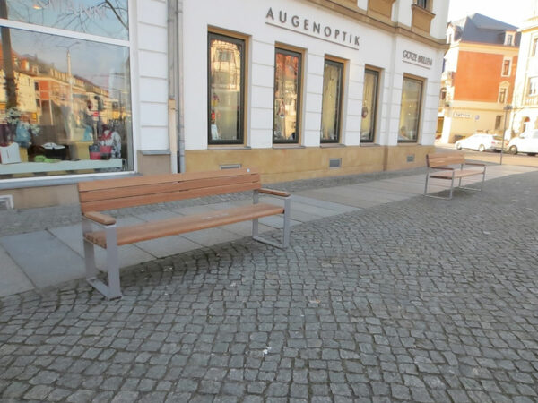 Es fehlen Bänke im Umgebungsbereich von Seniorenheimen, Begegnungsstätten, Ärztehäusern, Apotheken, Kaufhallen u. ä. und auch Bänke für einen „Zwischenstopp" in den anderen Bereichen, um älteren Menschen mit einem eingeschränkten Aktionsradius die Möglichkeit des (kurzzeitigen) Verweilens im Freiraum in ihrem näheren Wohnumfeld zu ermöglichen. Trotz des bestehenden Bankbestandes sind insbesondere die Entfernung zwischen Zentren und vorhandenen Verweil- bzw. Zielbereichen sowie neu gestalteten Verweilbereichen insbesondere für ältere Bürger zu groß. Zwingend erforderlich sind daher überwiegend punktuelle Standorte, die wie „Trittsteine" die vorhandenen Verweilbereiche miteinander vernetzen, d. h. aus dem Stadtzentrum bis zur Parkanlage bzw. aus dem Wohngebiet bis ins Stadtzentrum usw. Die vorgeschlagenen neuen Bankstandorte sind daher nicht immer unter dem Gesichtspunkt von hoher Aufenthaltsqualität des Standortes ausgewählt worden, sondern im Sinne der Verkürzung von Abständen in Hauptlauflinien und Ergänzung von Arealen mit Unterversorgung.