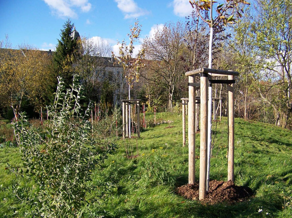 - Neubepflanzung des ehemals brachliegenden und verwilderten Teilbereichs mit Bäumen, Sträuchern und Rasen