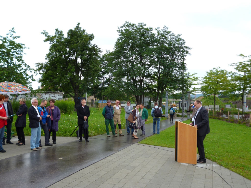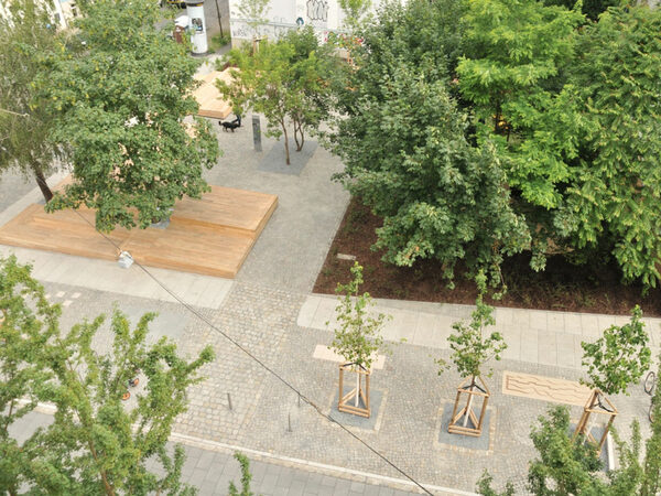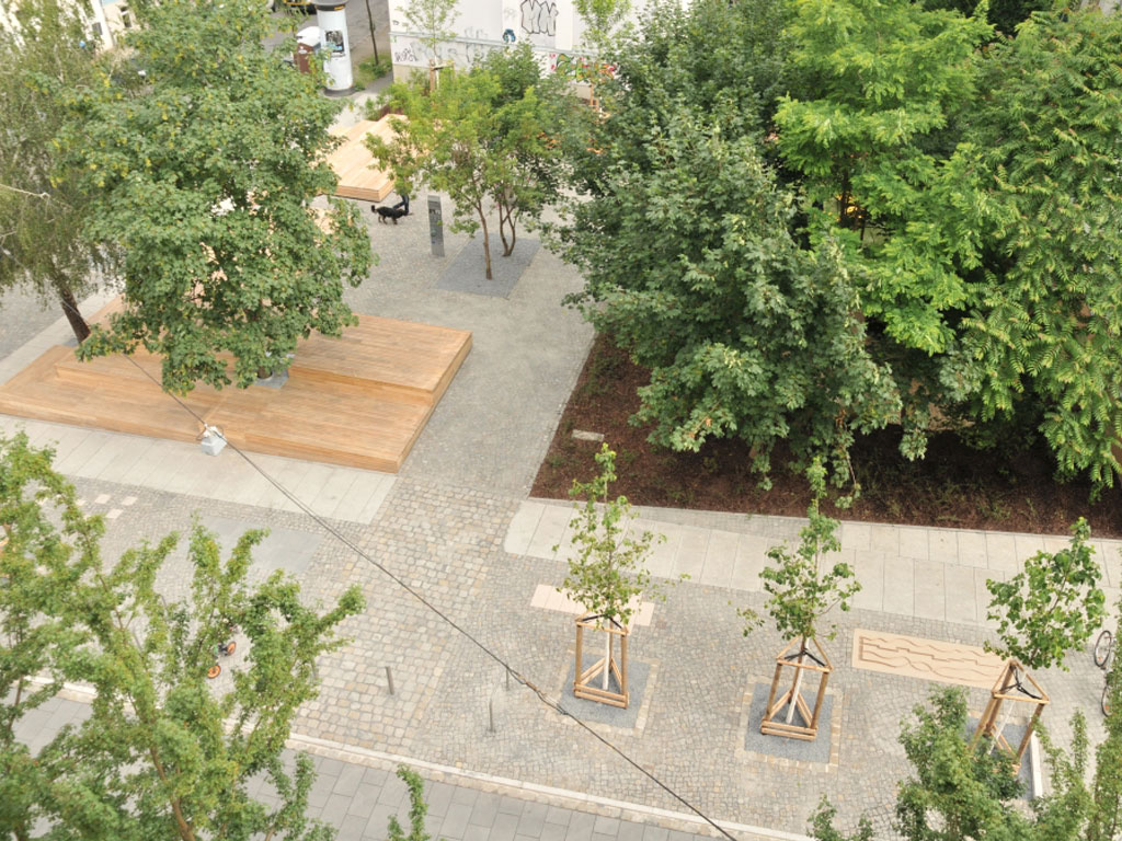 Mit der Umsetzung der Maßnahme wurde im Dezember 2012 begonnen. Die Freifläche wurde am Tag der Architektur dem 30.06.2013 übergeben.