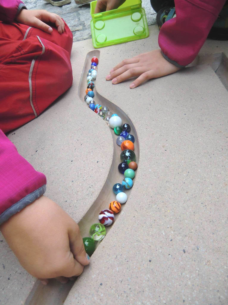- Ausstattung des Bereichs mit Sitzgelegenheiten und Spielelemente, welche zum Verweilen einladen
