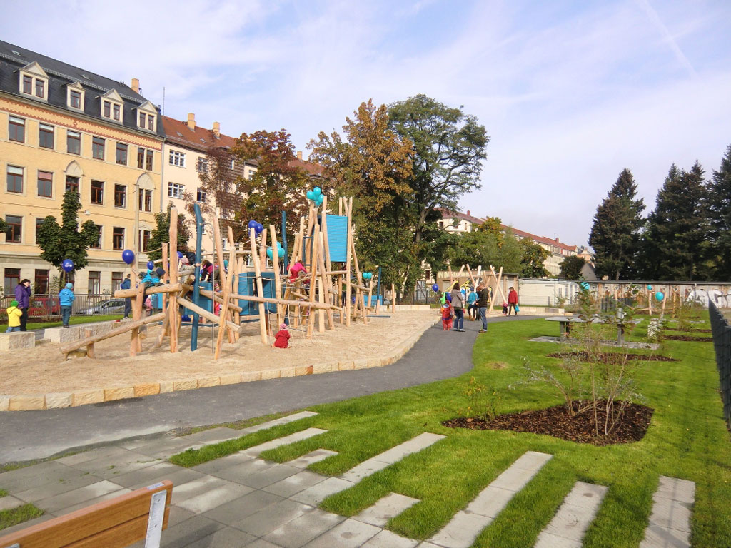 Bereits im Rahmen der Wohnumfeldstudie ("WUM", 2010) wurde der dringende Bedarf an einem Spielplatz ausgewiesen. Die Fläche im DREWAG-Areal bot sich aufgrund ihrer Lage und Größe ideal zur Errichtung einer solchen Anlage an.