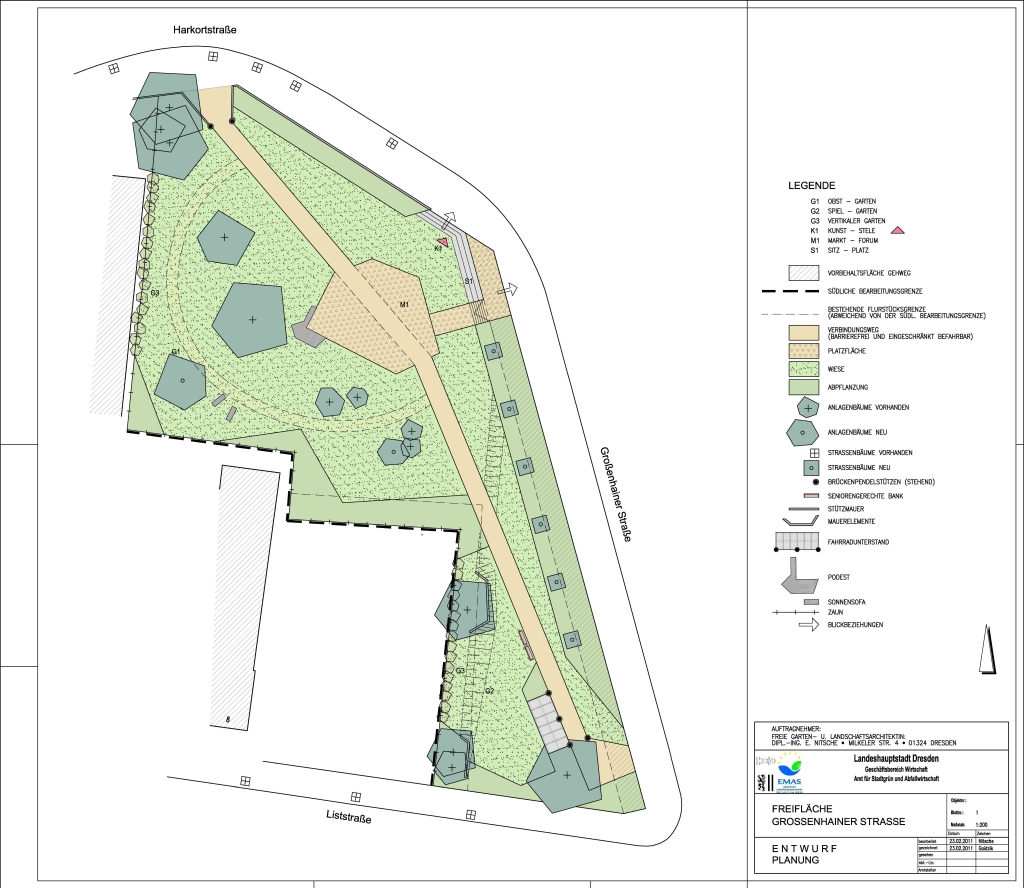 Diesem übergeordneten Ziel folgend wurde ein Gesamtkonzept für den Teilraum Großenhainer Platz, Kirchenstandort einschließlich angrenzender Flächen und Petrikirchstraße erarbeitet.