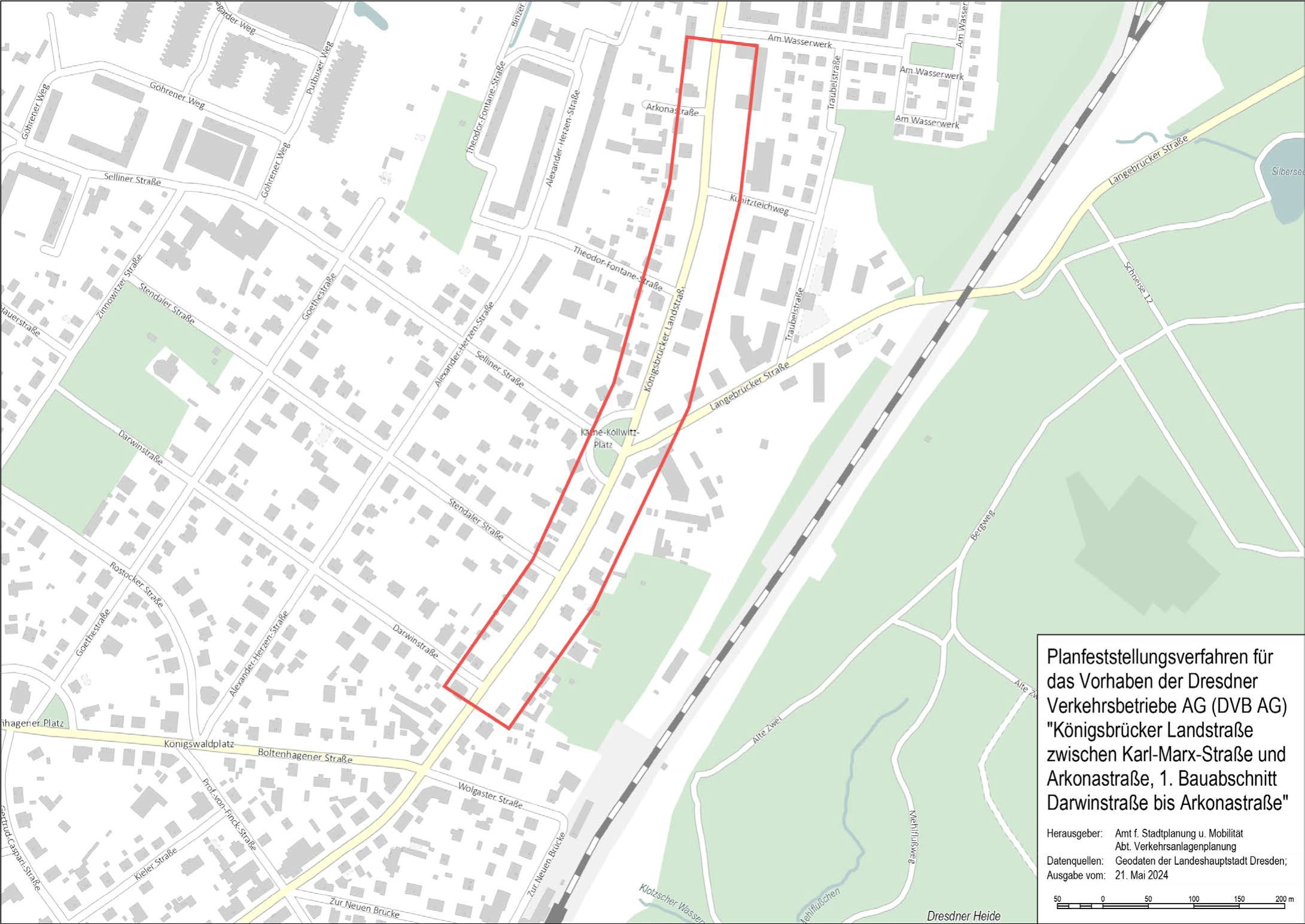 Planfeststellung für das Vorhaben der Dresdner Verkehrsbetriebe AG (DVB AG) „Königsbrücker Landstraße zwischen Karl-Marx-Straße und Arkonastraße, 1. Bauabschnitt Darwinstraße bis Arkonastraße“