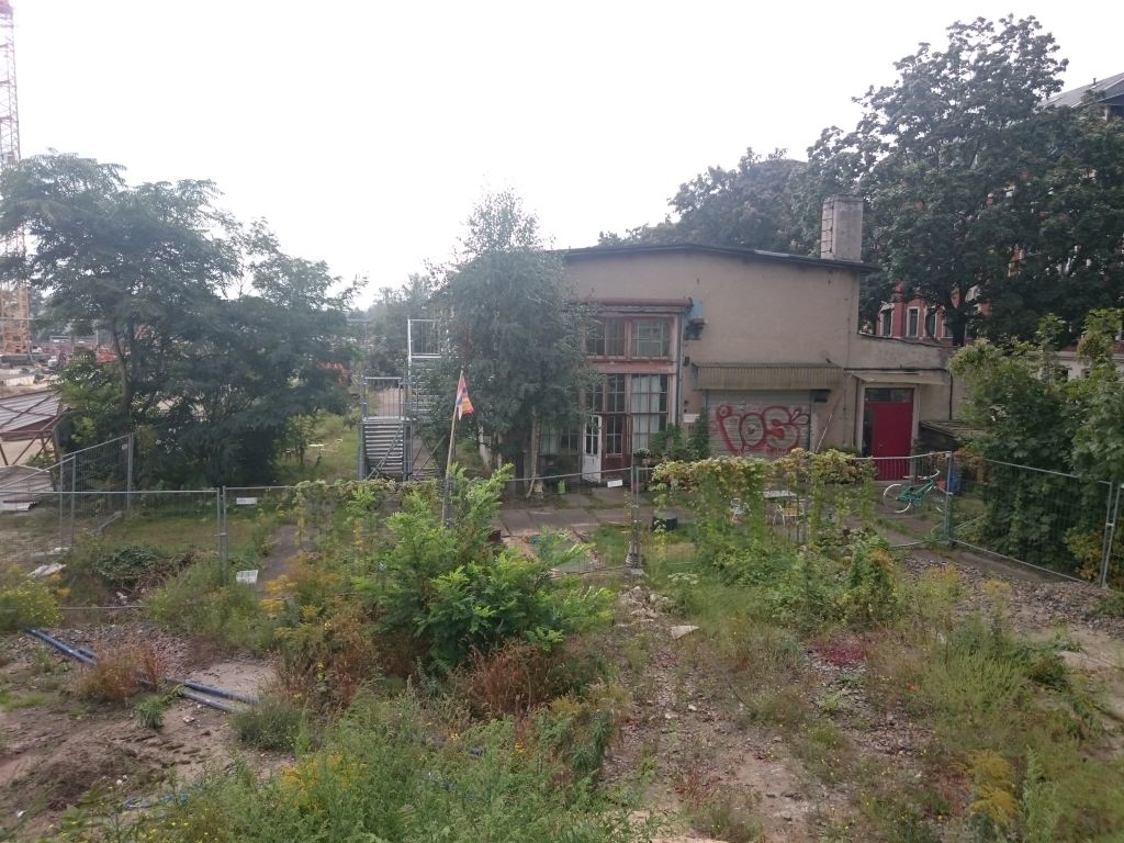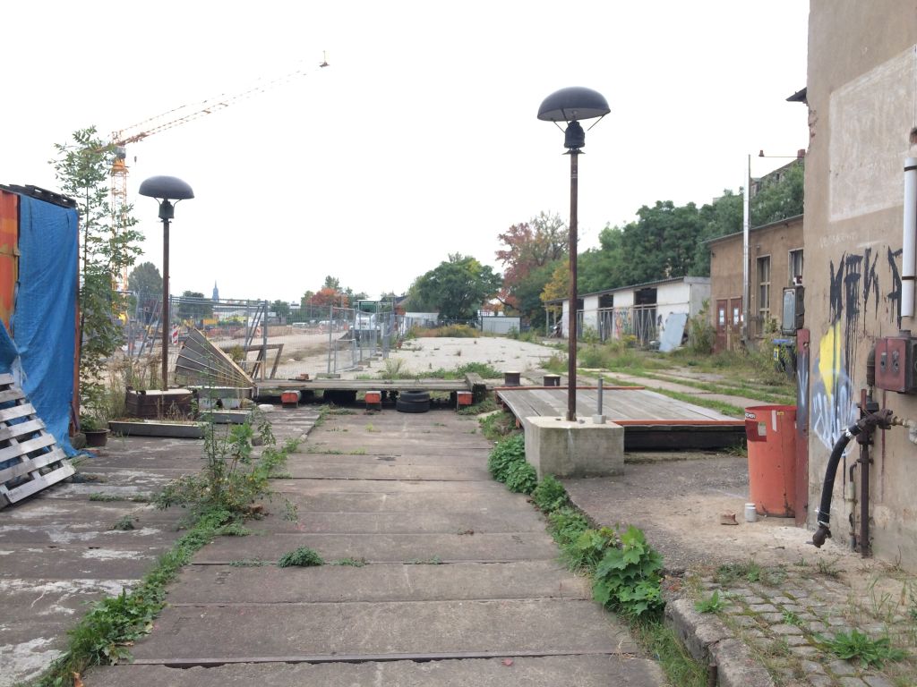 Bisher war diese Fläche Bestandteil des ehemaligen Containerbahnhofs Erfurter Straße und war durch eine großflächige Versiegelung durch Schotter-, Beton-, Pflaster- sowie Asphaltflächen sowie durch Restbebauung der alten Bahninfrastruktur geprägt. Vereinzelt wurde die Brache bisher durch Gewerbenutzung sowie seit 2008 durch eine Kultureinrichtung des Vereins GEH8 Kunstraum und Ateliers e. V. genutzt.