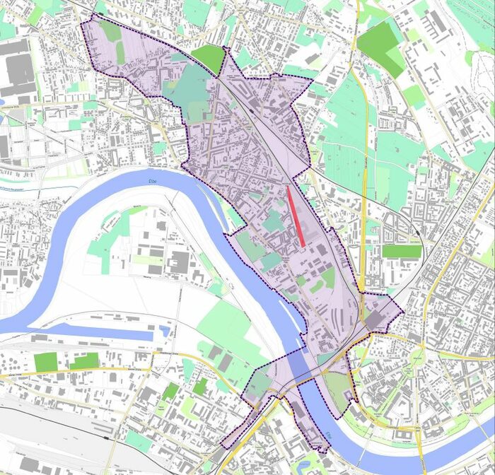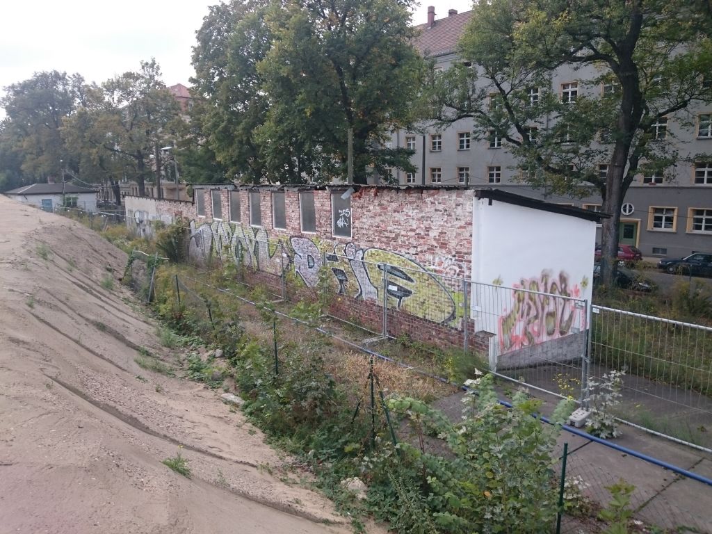 Mit EFRE-Fördermitteln soll eine Grünanlage entstehen, die hohe Aufenthaltsqualität bietet und die Umweltsituation verbessert. Im Vorfeld dieser Maßnahme sind Abbrüche und Entsiegelungsmaßnahmen notwendig.