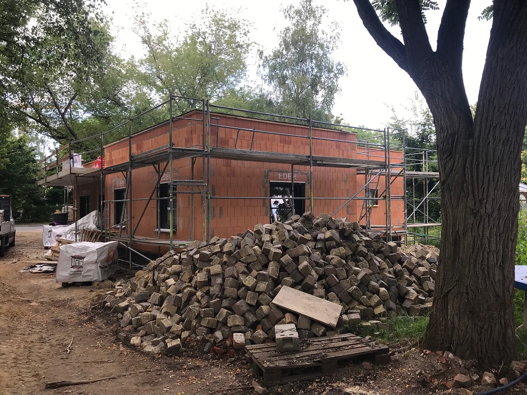 Für eine moderne Kinder- und Jugendarbeit ist die Erneuerung des Spiele- und Bürohauses unumgänglich. Da die Gebäude keine wirtschaftliche Sanierung zulässt, werden sie abgebrochen und anfallende Altlasten im Baufeld entsorgt. Im Anschluss entsteht ein Ersatzbau mit Aufenthaltsbereich, Büro und barrierefreien Sanitäranlagen. Auf den Freiflächen werden zusätzliche Spielangebote errichtet.
