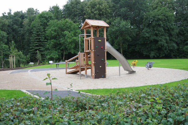 Die weitgehend ungenutzte und bis zur Sanierung wenig attraktive Freifläche an der Badstraße wurde als Spiel- und Grünfläche neu gestaltet. Die neu entstandene Festwiese wird für Wochenmärkte oder den jährlich stattfindenden Weihnachtsmarkt genutzt. Die vielseitig nutzbare Freifläche soll außerdem eine Ergänzung für Veranstaltungen und Festivitäten des Bürgerhauses sein und die Aufenthaltsqualität erhöhen.