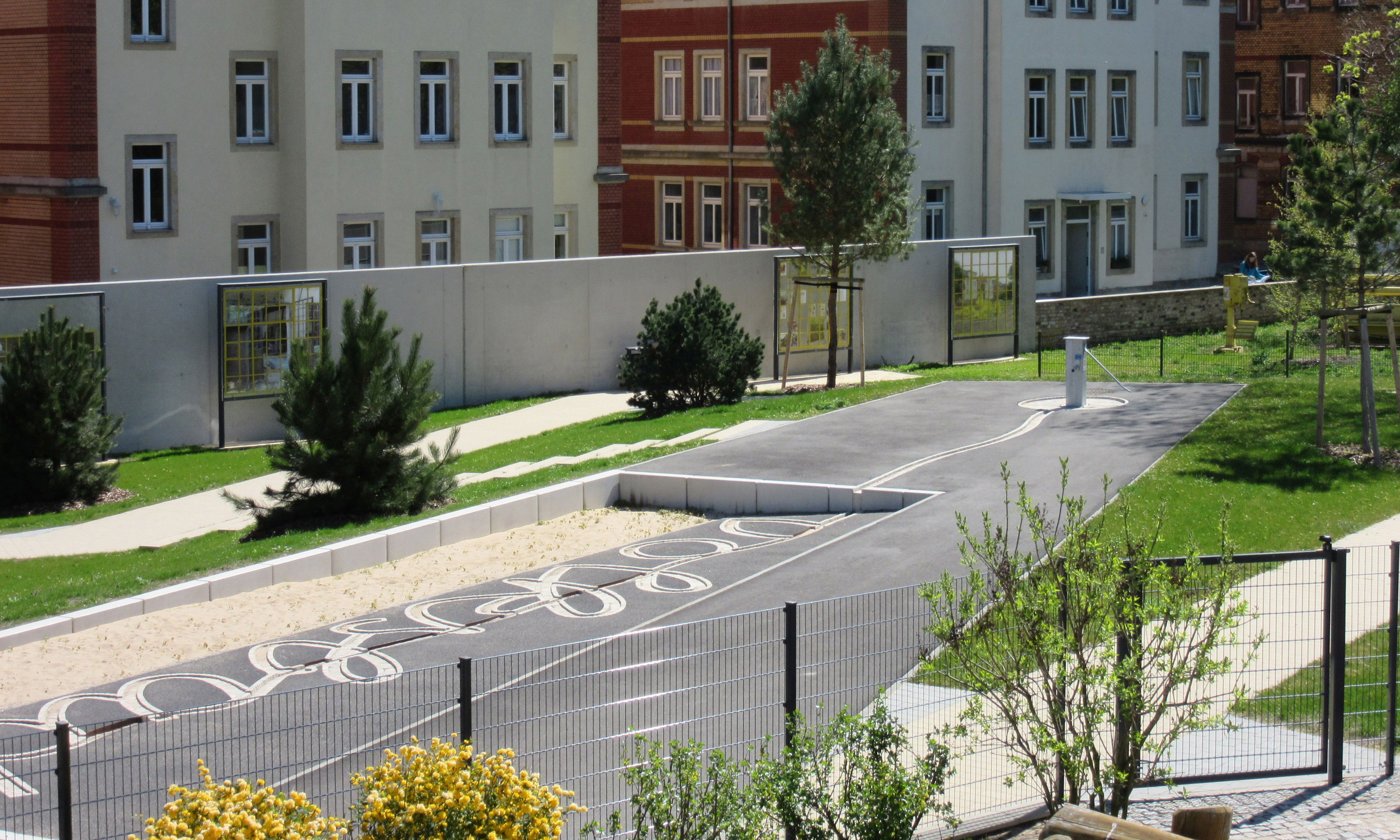 Es entstand eine dauerhafte Anlage zur Freude von Groß und Klein, welche zugleich als „grüner Trittstein“ an der Weißeritz das einstige Ufer erlebbar macht. Beschattete Sitze laden zum Verweilen ein, Kletterfelsen und Fahrradparcours sind ebenfalls Teil des neu gestalteten Spielplatzes.