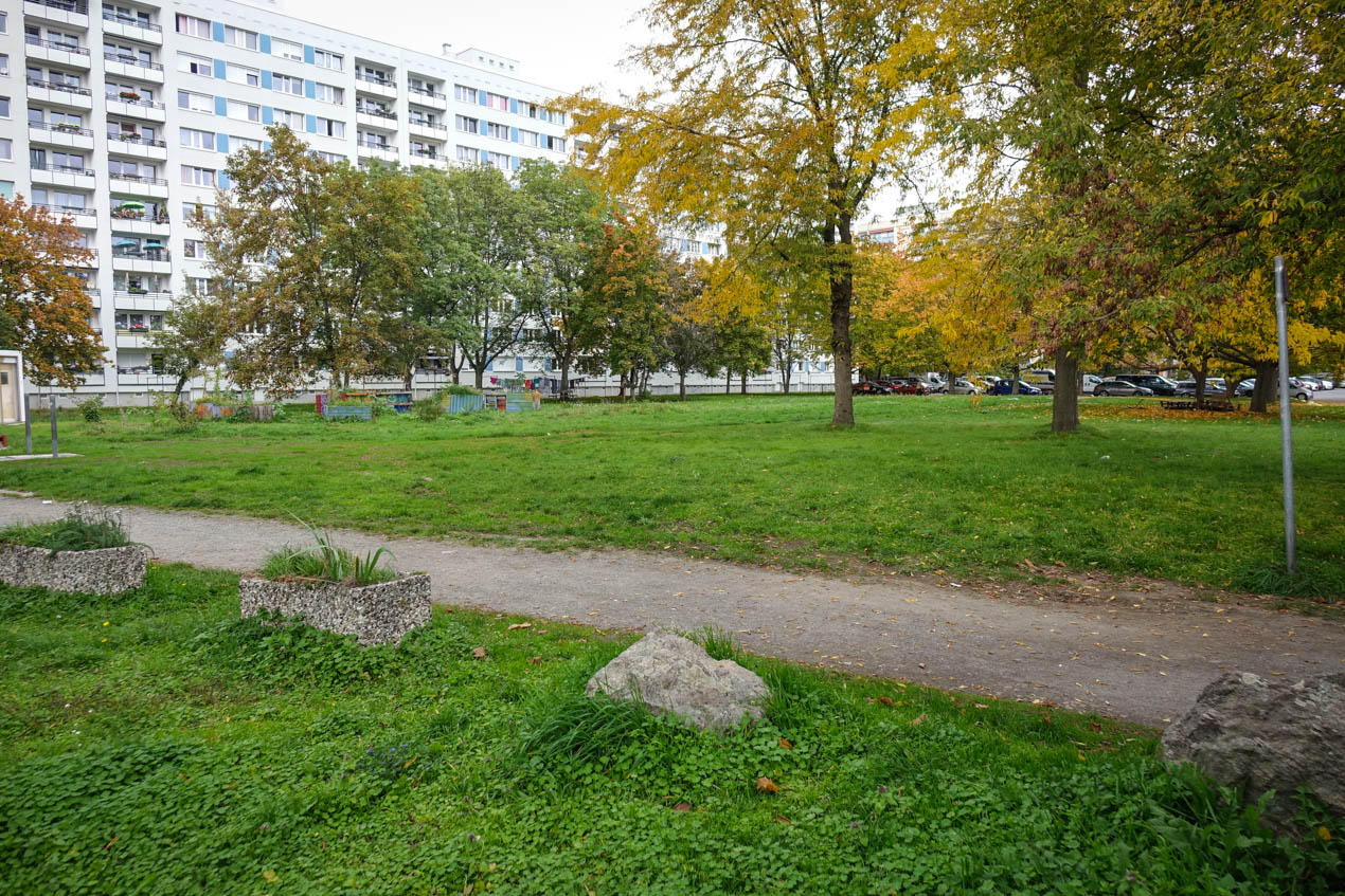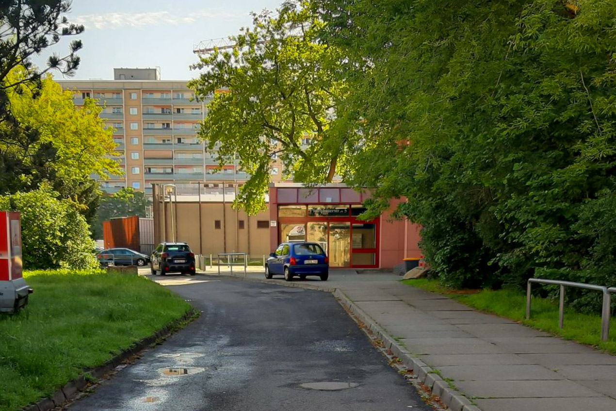 Neu gestaltete Freifläche vor der Rettungswache in der Johannstadt