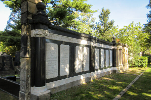 Neu gestaltete Friedhofsmauer am Neuen Jüdischen Friedhof