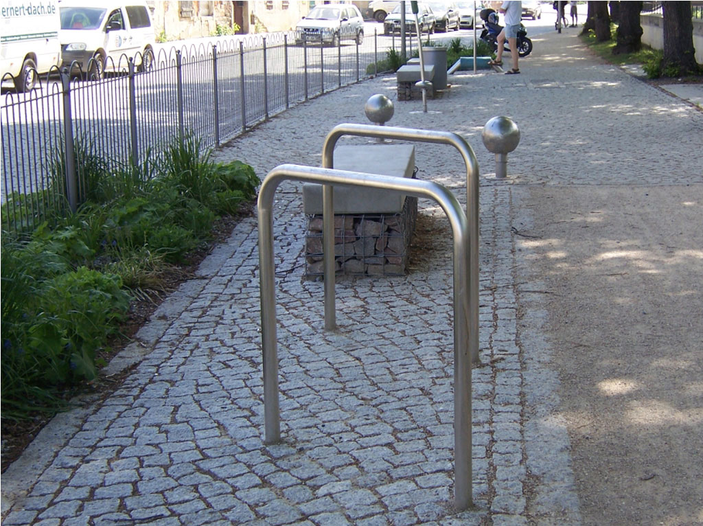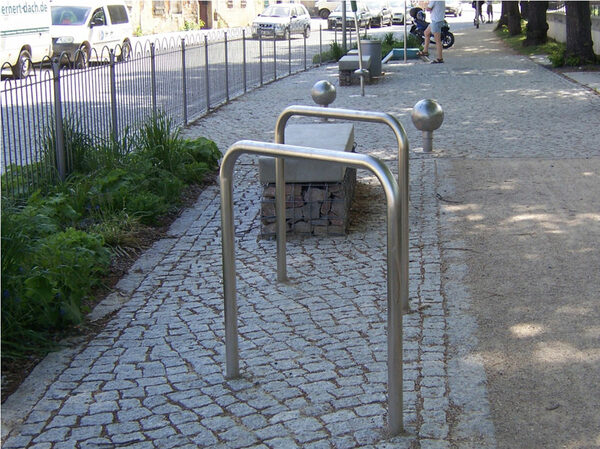 Hofmühlenstraße nach der Sanierung mit Bewegungselementen aus Edelstahl im Promenadenbereich entlang der Weißeritz