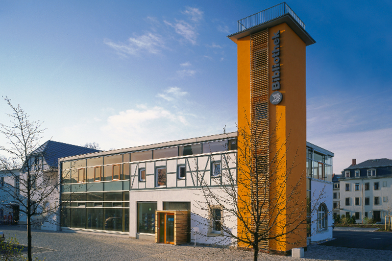 Das hinter dem Ortsamt gelegene denkmalgeschützte ehemalige ruinöse Gebäudeensemble der ehemaligen Feuerwache konnte durch Umbau, Instandsetzung und Sanierung zu einer Bibliothek mit integrierter Fahrbibliothek umgestaltet werden. Aufgrund der attraktiven Verbindung von Architektur und Funktionalität, der guten Zusammenarbeit der Mitarbeiter mit Schulen, Kindergärten und Vereinen sowie durch zahlreiche Veranstaltungen erhielt die Stadtteilbibliothek bereits zweimal die Auszeichnung als Bibliothek des Jahres.