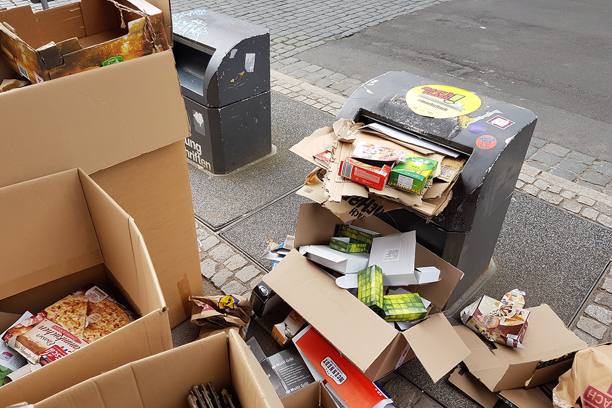 - Der Nutzen: mehr Pappen passen in die Container und Nebenablagerungen werden vermindert.