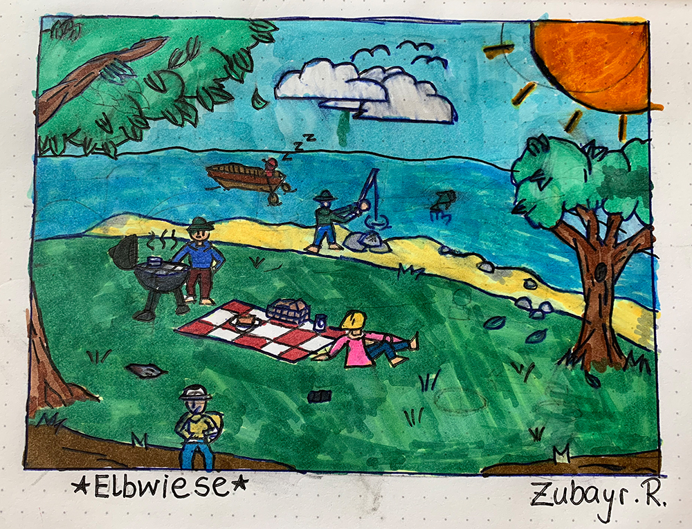 Wenn du Fragen hast oder uns noch ein Kunstwerk senden möchtest, freuen wir uns auf deine E-Mail an elbwiesen@dresden.de.