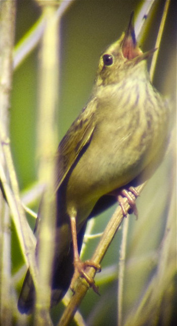 Ein ziemlich seltener Brutvogel der mit Gebüschen durchsetzten Hochstaudenfluren ist der Schlagschwirl. Er ist ein Langstreckenzieher und besucht uns nur sehr kurze Zeit. Im Mai brütet er hier bevor er im Juli und August schon wieder für ein dreiviertel Jahr auf Zug geht oder in die Winterquartiere nach Afrika fliegt.