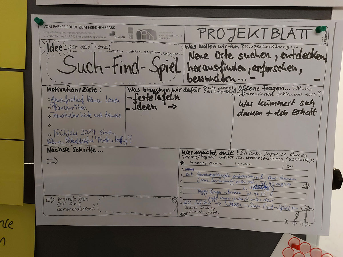 Umsetzung: als Pfad auf dem Friedhof mit Informationen/Aufgaben etc.