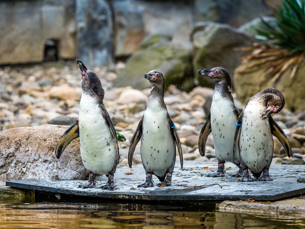 ... sollte man einen Besuch der neuen begehbaren Flamingovoliere in der Kubaflamingos, Rote Sichler und Rosa Löffler zu Hause sind sowie im Streichelgehege, in der Tundra-Anlage, bei den Humboldt-Pinguinen und bei den geselligen Erdmännchen.