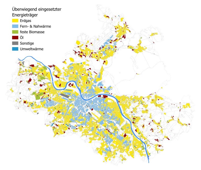 Weitere Informationen zu den Energieträgern zur Wärmeversorgung im Bestand können im Energieatlas eingesehen werden.