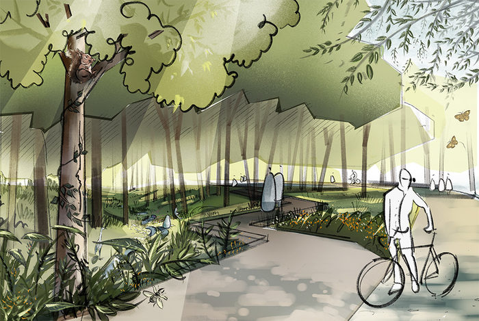 Für die Freilenkung der Flächen waren besondere Schwierigkeiten zu bewältigen. So muss für den neuen Radweg, der bis 2027 fertig sein soll, das Gelände eines Hundesportvereins in Anspruch genommen werden.