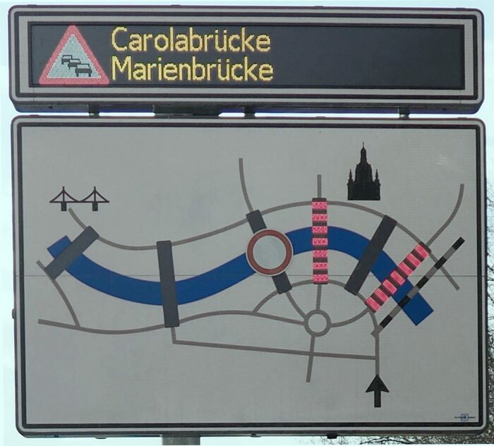 Seit 2013 können sich die Verkehrsteilnehmer über das Elbe-Brücken-Informations-System (EBIS) zur Verkehrssituation auf den innerstädtischen Elbebrücken informieren.