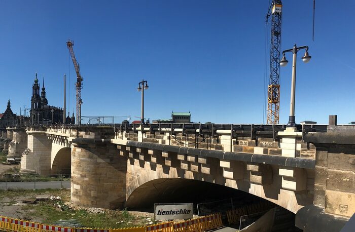 Durch das Elbhochwasser im Jahr 2013 entstanden an der Augustusbrücke massive Schäden. 2017 startete daher eine grundhafte und denkmalgerechte Instandsetzung auf Basis des Planfeststellungsbeschlusses vom 21. Februar 2017. Die Firma Hentschke Bau GmbH führt die Sanierung aus.