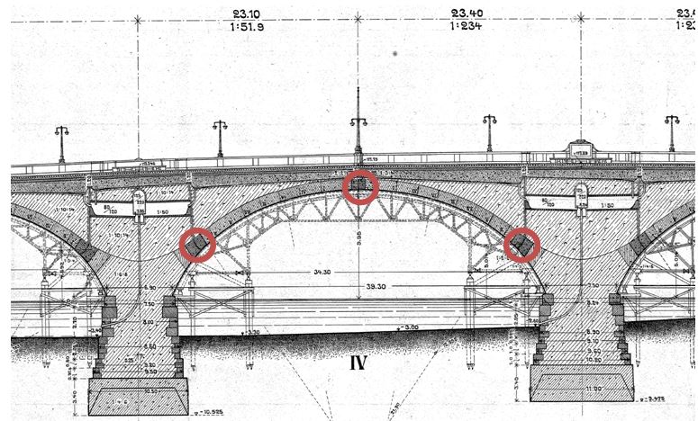 Die Brückenbögen besitzen je drei sogenannte Brückengelenke. Denn bei Brücken handelt es sich um dynamische Bauwerke, welche eine gewisse Beweglichkeit zulassen. Im Bereich der Gelenke muss daher eine funktionstüchtige Fuge durch alle darüber liegenden Bauwerke vorhanden sein. Durch die Hochwasserschäden war dies an einigen Stellen nicht mehr gegeben. Daher kam es zu Verschiebungen und weiteren irreversiblen Schäden an Bauwerksteilen. Das Wiederherstellen der Funktionsfähigkeit der Bewegungsfugen (auch Kämpfergelenke genannt) war daher ein weiterer wichtiger Teil der Sanierung.
