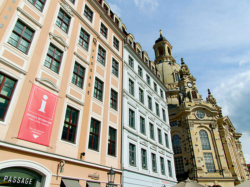 - Treffpunkt: Sitzbereich in der Dresden Information an der Frauenkirche (Untergeschoss in der QF Passage, Neumarkt 2)