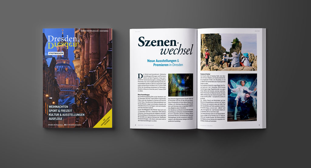 Passend zur Jahreszeit finden Sie in diesem Magazin aktuelle Themen für Dresden und Umgebung, Neues aus Kunst und Kultur sowie Ausflugstipps und Restaurant-Empfehlungen.