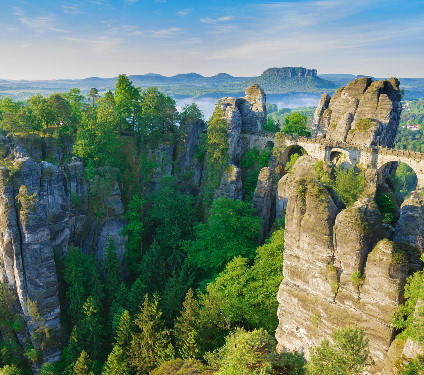 Südöstlich von Dresden befinden sich der kunstvoll angelegte Barockgarten Großsedlitz und das etwas eigenwillig gebaute Schloss Weesenstein. Über Pirna mit seinem "Blütenschloss" Zuschendorf gelangt man schließlich in die bizarre Felsenwelt der Sächsischen Schweiz.