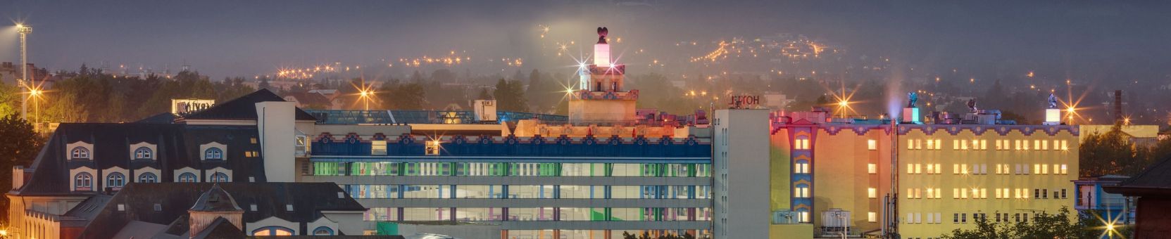 - Der gesamte Komplex des Babylon Centre entstand 1998 durch den Umbau einer ehemaligen Textilfabrik auf einer Fläche von mehr als 30 000 m². Im Laufe der Zeit wurden Unterhaltungszentren, gastronomische Einrichtungen, ein Kongresszentrum, ein Vier-Sterne-Hotel und ein Wellness-Center gebaut. Das Ergebnis war ein einzigartiges Projekt, das zu seiner Zeit beispiellos war und Unterhaltung, Komfort und Entspannung unter einem Dach vereinte - eine echte "Erlebnisfabrik".