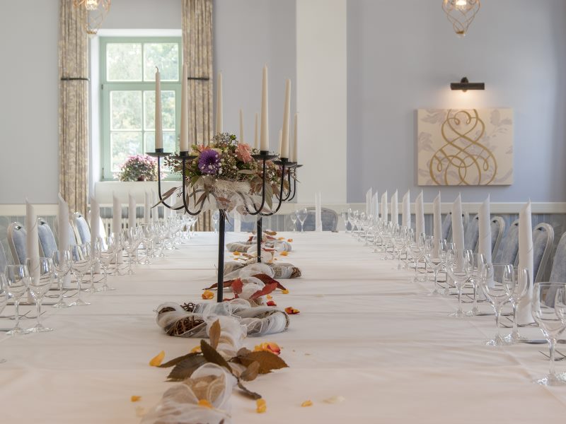 Der Fliederhof wird Ihre Gäste begeistern. Hohe klimatisierte Räume und die klassisch-gediegene Einrichtung schaffen ein nobles Ambiente. Die hohen Fenster geben den Blick in den bezaubernden Schlosspark frei. Nutzen Sie die Zeit um Ihren Gästen diese einzigartige Umgebung mit einer Führung
