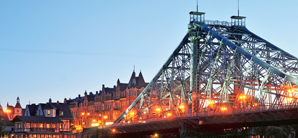 At Straßburger Platz, art, culture, and architecture have always intersected. Until the bombing of Dresden in World War II, this area was home to the city's exhibition palace and the Kugelhaus. The latter was dismantled before the war during the Nazi regime. Today, the Gläserne Manufaktur, with its nearly 40-meter high glass tower, bridges the past to the present, showcasing cutting-edge technologies.