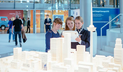 Die Gläserne Manufaktur is not only a production site but also a centre for innovation and education. Young talents develop new concepts for connected mobility in the in-house startup incubator. The Future Mobility Campus, a student laboratory located within the production area, gives young people the opportunity to engage with future mobility topics and develop their own ideas.