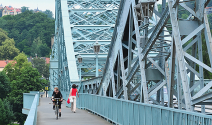The area around the Blue Wonder Bridge is hugely popular with Dresden’s residents and tourists alike. There are plenty of shops which make both sides of the river well worth a visit, and in particular more businesses specialising in the design and decoration of homes and gardens than anywhere else in the city. That is not to mention a host of mouth-watering boutique food outlets ranging from wine dealers to cheese and chocolate shops – making a stroll through this idyllic part of Dresden a welcome break from the hustle and bustle of the city centre!